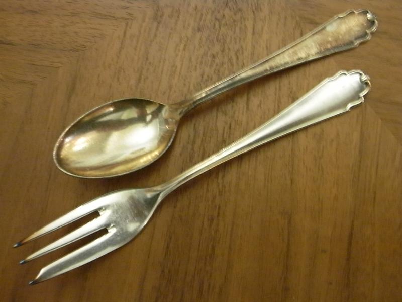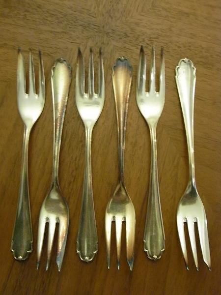 Kaffeelöffel u. Kuchengabeln der Manufaktur Bruckmann. Mit 90er Auflage versilbert.