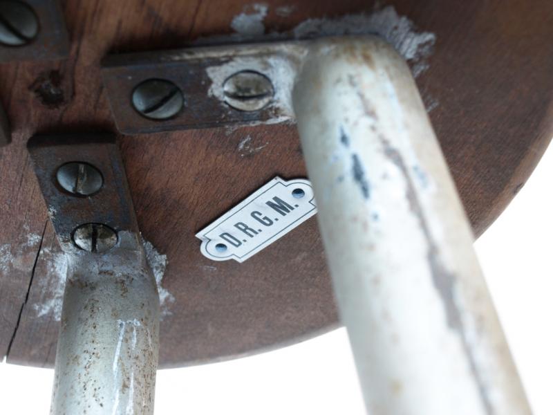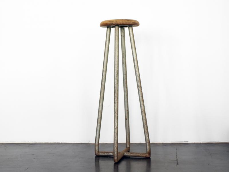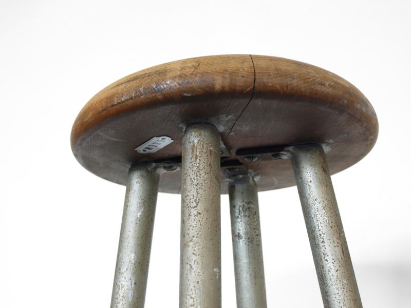 Ein unverwüstlicher Hocker in besonders hoher Ausführung, einst für bestimmte Webstühle genutzt, mit normalen Gebrauchsspuren und schöner Patina. Der Durchmesser der Sitzfläche beträgt 23 Zentimeter.
