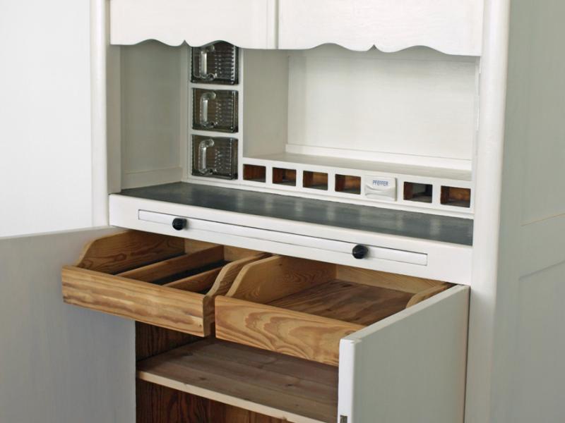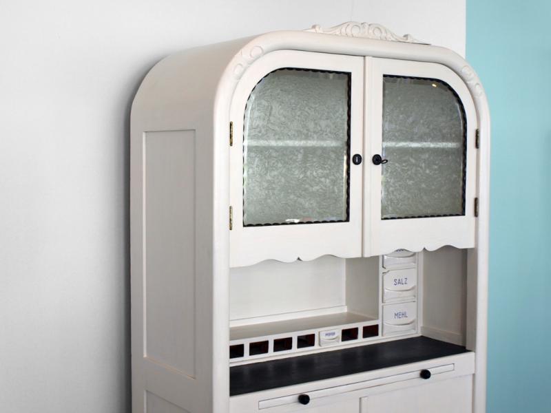 Äußerst adrettes Küchenschränkchen, das auf Grund kompakter Maße auch in kleinen Räumen oder bei niedrigen Decken gut zur Geltung kommt - aber auch in geräumigen Zimmern verfehlt es seinen Charme nicht.