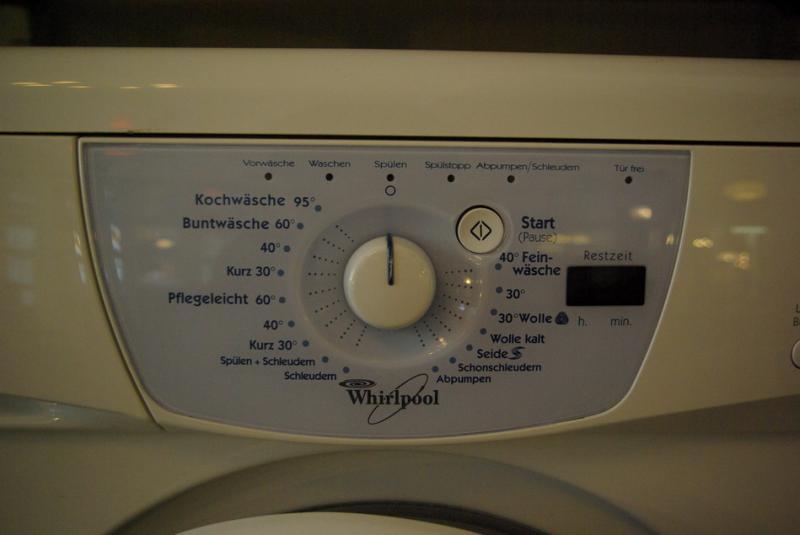 Sehr gute gebrauchte Whirlpool Waschmaschine mit 1400 Schleudertouren, Restzeitanzeige und diversen Programmen, die am besten dem Bild des Bedientableaus entnommen werden.