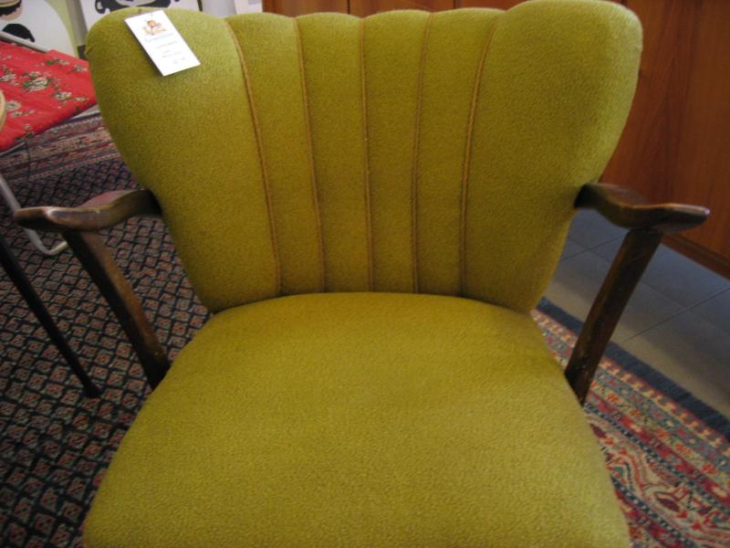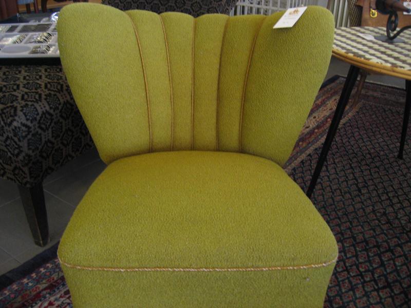 Schöner Cocktailsessel im Originalbezug in einer tollen hellgrünen Farbe mit Armlehnen.