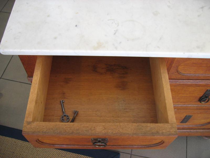 An den Beschlägen der Schubladen fehlt je ein Griff.